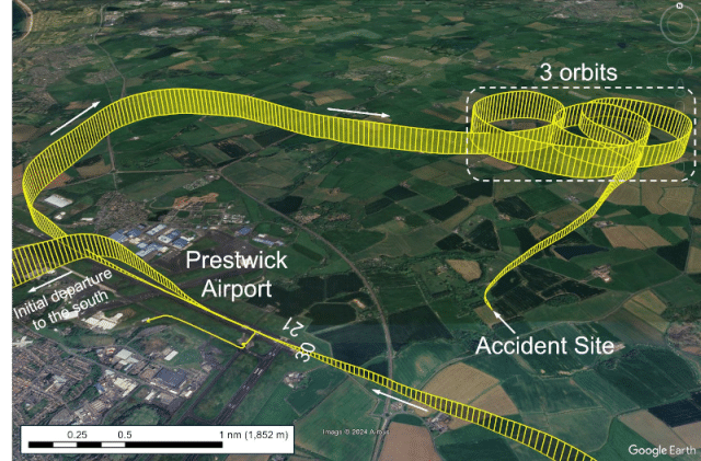 The pilot had a total of 307 hours, of which 101 were on type. His most recent flight had been in November 2023. The flying club at Prestwick requires pilots have at least one flight every 62 days, so the pilot scheduled a flight with the club’s Chief Flying Instructor. This is standard practice: the instructor is there as a safety pilot and, presuming all goes well, signs off the pilot as safe to fly.