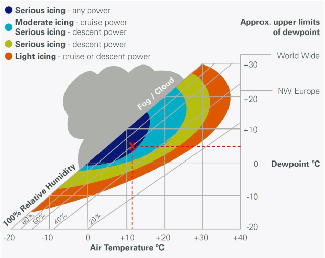 The weather was great: light wind and good visibility with the cloud base at 3,000 feet. The temperature that day was 11°C (52°F) with a dewpoint of 5°C (41°F). Their only issue that day was that the temperature and the dewpoint were very close, which means higher humidity. This matters because the temperature inside of the carburettor is much colder, caused by the Venturi effect (when air accelerates through a narrow passage) and the fuel vaporisation. The combined effect can drop the temperature inside the carburettor by as much as 30°C. If the air is humid, the moisture in the air freezes, creating ice which blocks the engine’s air supply.