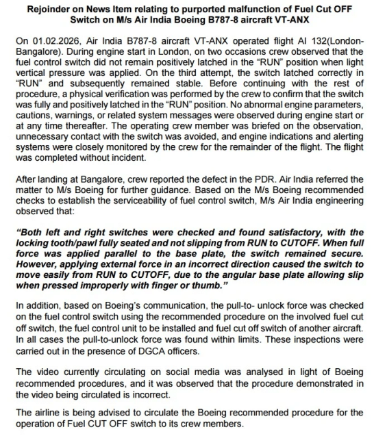 From day one after the AI-171 crash, we have been insisting that all B-787s be checked for electrical systems. We have gone on record in the media and written letters to the Ministry of Civil Aviation (MoCA) and the DGCA that fuel control switches may have moved automatically due to electrical malfunctions of TCMA in the AI-171 crash.