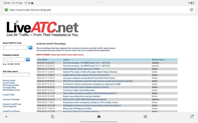 The audio comes from LiveATC.net, a streaming and archive service that covers over a thousand feeds from radios near airports around the world. The recording can be confirmed there as having taken place on Guard on the 12th of April 2026.
