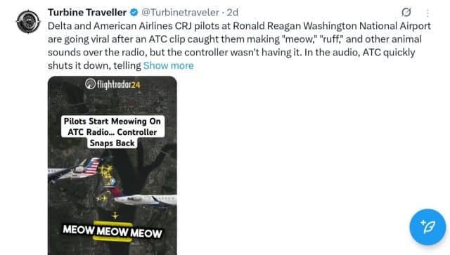 If you all respond in the comments with meow, I’m just going to assume Fear of Landing has quietly become a regional jet crew lounge.