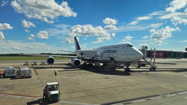 My journey started on the 2nd of December with a 13-hour flight from Buenos Aires to Frankfurt in a Boeing 747-8. D-ABYO is one of Lufthansa’s nineteen Boeing 747-8 Intercontinental aircraft, making Lufthansa the largest operator of the passenger variant worldwide. There’s a great article and video on Flightradar24 documenting Lufthansa’s nineteen Boeing 747-8 Intercontinental aircraft. The 747-8 represents the final evolution of Boeing’s “Queen of the Skies”. Lufthansa took possession of D-ABYO on the 30th of April 2014 and named it after the German federal state of Saarland. Its five minutes of fame took place during the 2014 FIFA World Cup in Brazil, when Lufthansa created the “Fanhansa” special livery, sporting a logo of a football/soccer ball and the German flag. Lufthansa applied the livery on D-ABYO and sister aircraft D-ABYI Potsdam. This was the first time in Lufthansa’s 60-year history that the airline altered its name on aircraft fuselages for a promotional campaign.